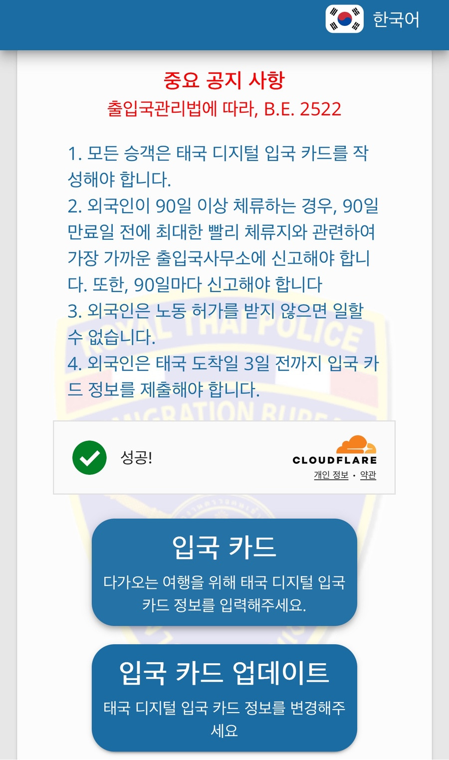 이전에는 종이 또는 일부 전자 입국 신고서라고 했다면 이번에는 Thailand Digital Arrival Card (TDAC) 전자입국신고서만으로만 가능하다고해요. 2025년 5월부터 전면 도입되었대요.