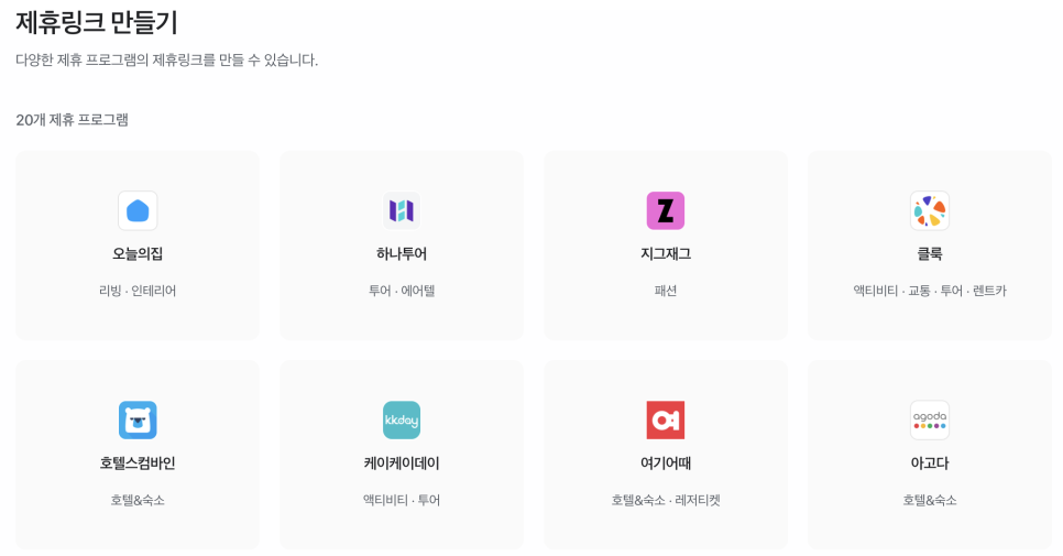 블로그에 기록한 여행 포스팅이 있다면, 그에 따른 세시간전 제휴 플랫폼 중 에서 선택해서 링크등을 생성할 수 있어요.